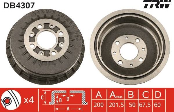 Тормозной барабан TRW задний для Lada Granta I 2011-2026. Артикул DB4307