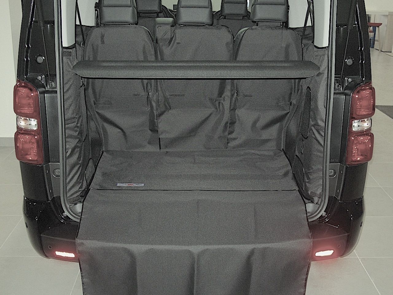 Защитный чехол AUTOSMSTUDIO "Maxi" в багажник автомобиля для Peugeot Traveller (Long Active) 2017-2026, черный. Артикул TP-CT-SPTBL-MAXI-BL